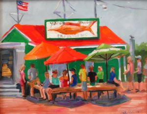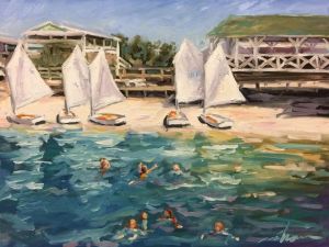 Currently living on the coast of North Carolina, she finds inspiration everywhere. Oceans, rivers, marshes are favorite subjects as well as people enjoying themselves on area beaches. These works can be found in New Work or Coastal Work. People and Places usually are paintings from travels and Still lifes are generally done in the studio when the weather is too hot or cold.