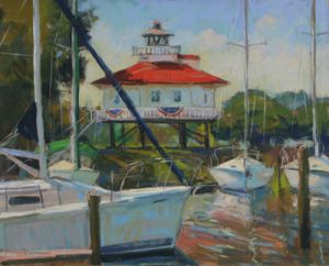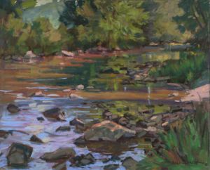 She enjoys working in the plein air tradition, working directly from life for the creation of most of her paintings and she often travels for inspirational landscape locations. She participates in plein air events and is currently represented by Cabell Gallery (Lexington VA), Franco's Fine Clothier (Richmond VA) and Allure Art Center (White Stone VA).